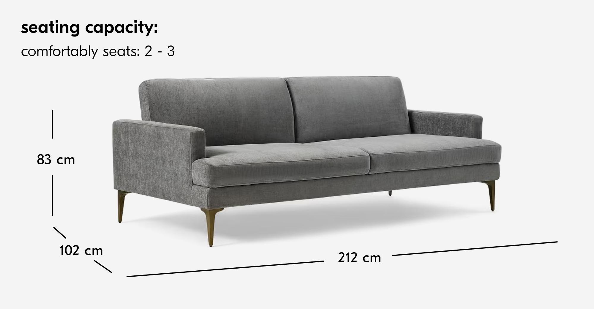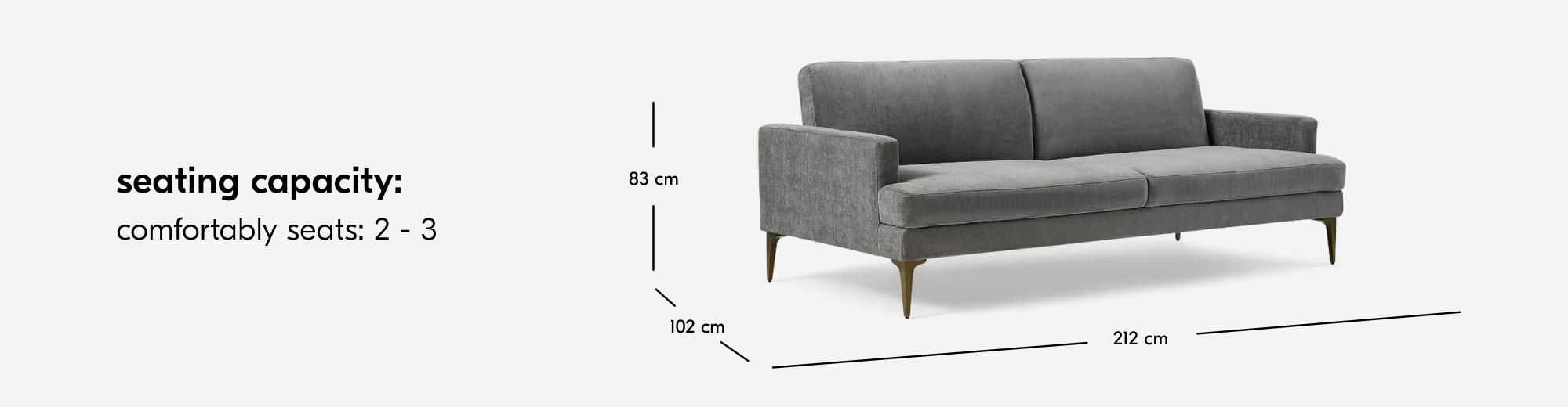 - Overall (sofa): 212 cm w x 102 cm d x 83 cm h.